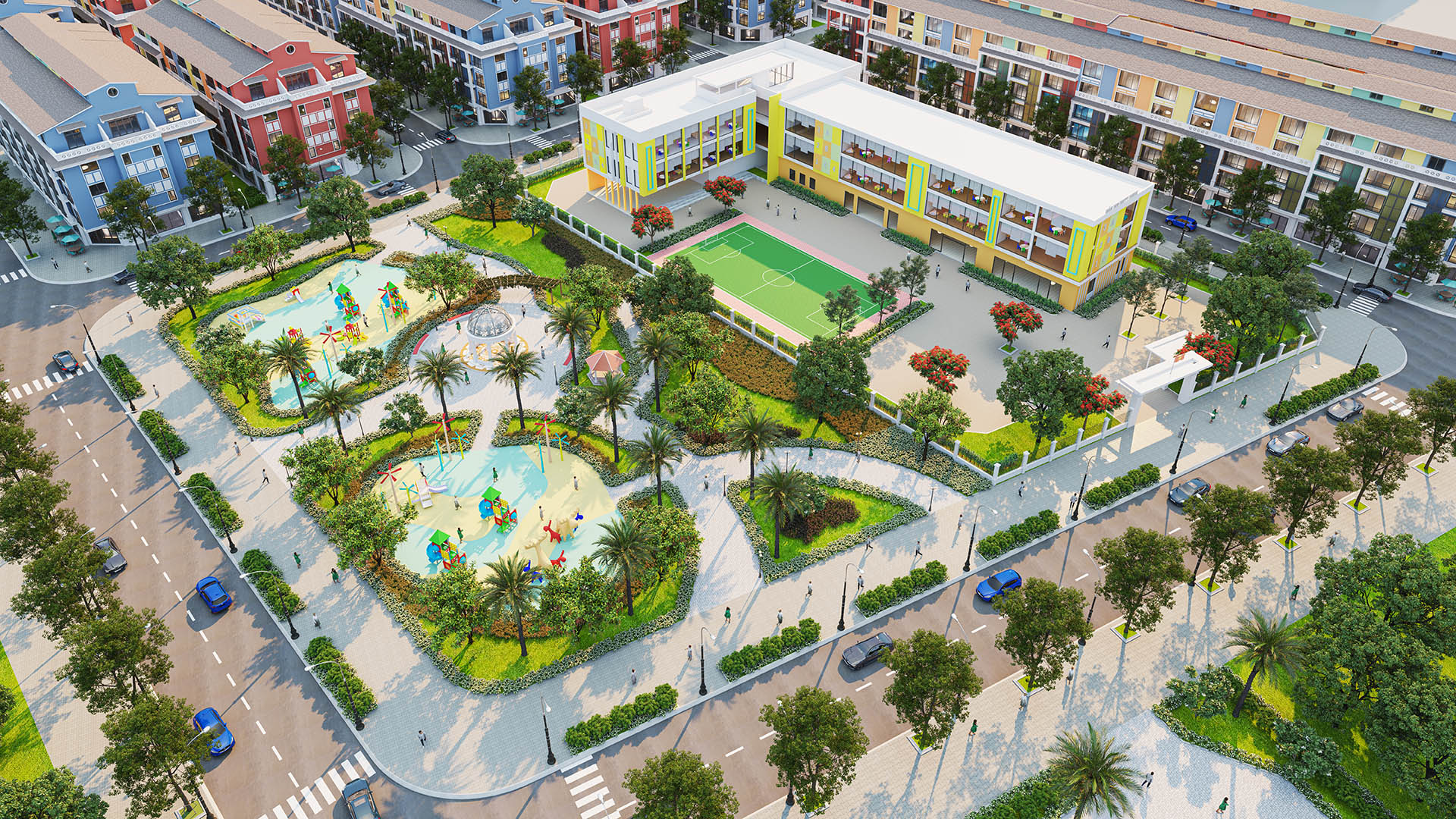Tiện ích công cộng: Khuôn viên cây xanh, bãi đỗ xe và các công trình dịch vụ khác sẽ được bố trí hợp lý, tạo nên một không gian sống và kinh doanh lý tưởng.